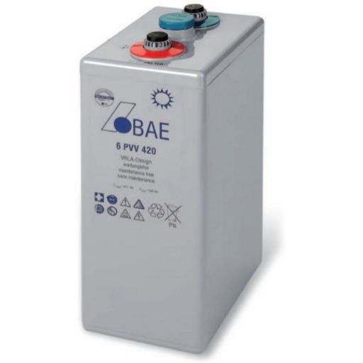 BAE SECURA PVV solar batteries are maintenance-free and used to store electric energy in medium and large solar photo-voltaic installations. Due to the robust tubular plate design BAE PVV Batteries are excellent suited for highest requirements regarding cycling ability and long lifetime.